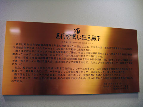 球技場メイン入り口にある高円宮殿下の記念レリーフ。(2008年7月20日撮影)