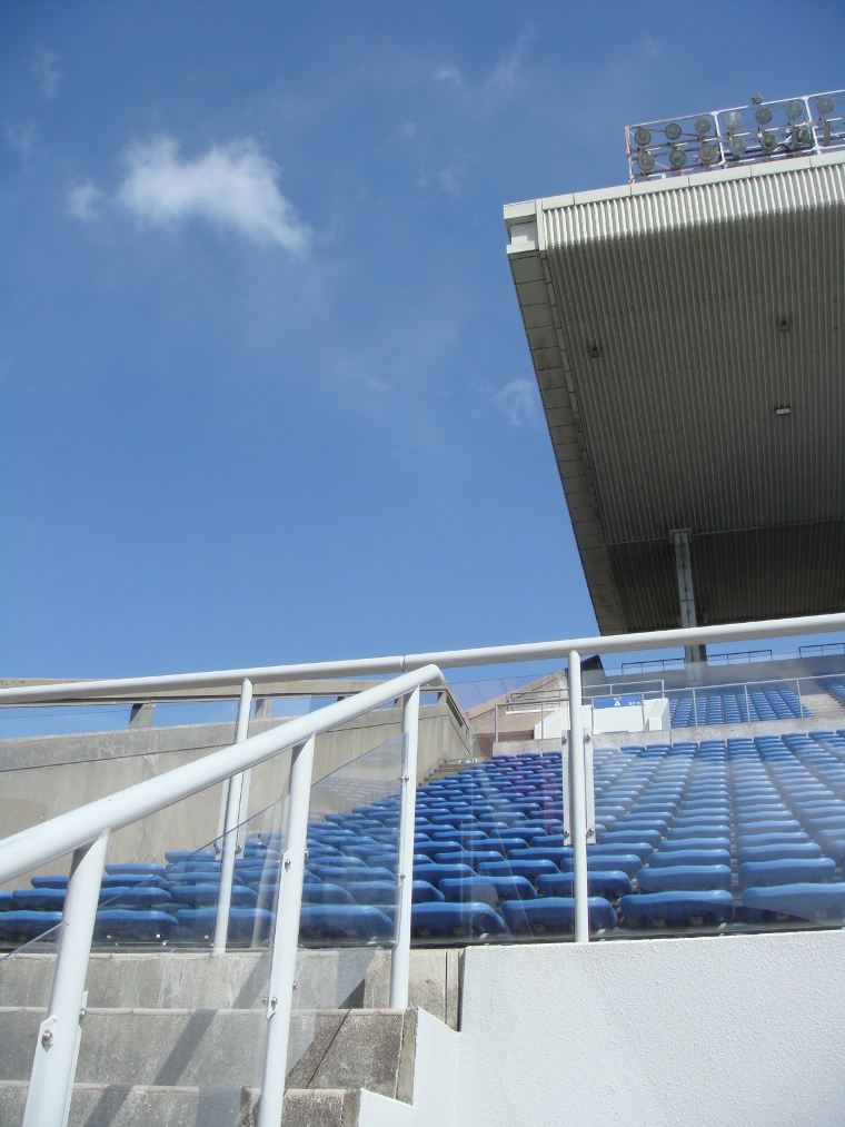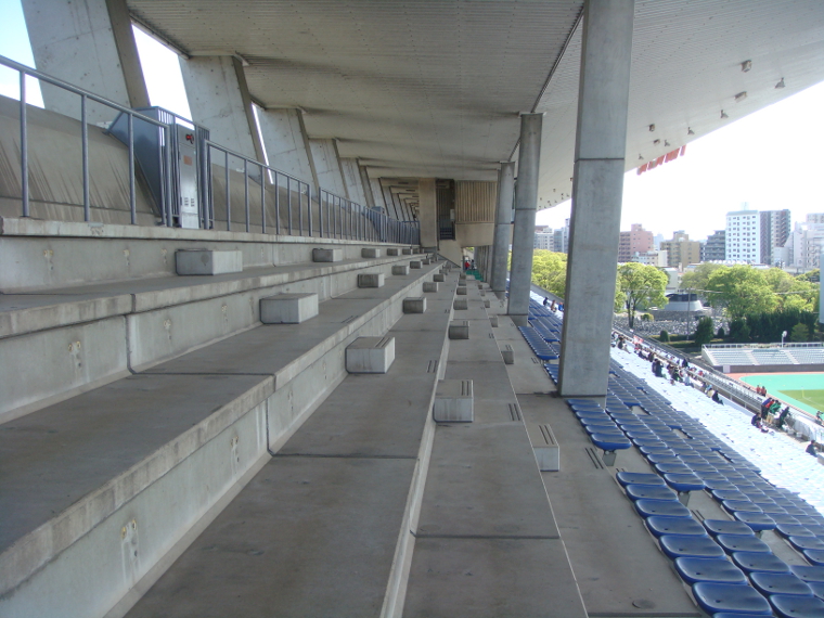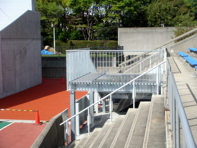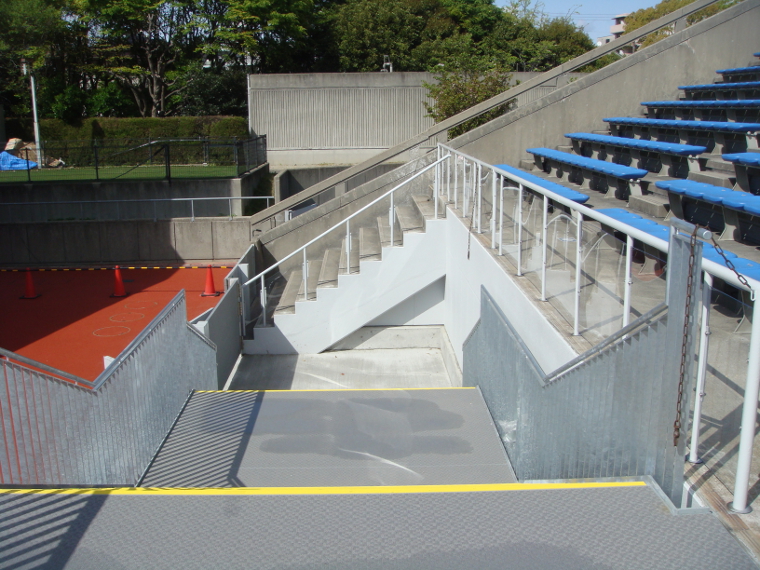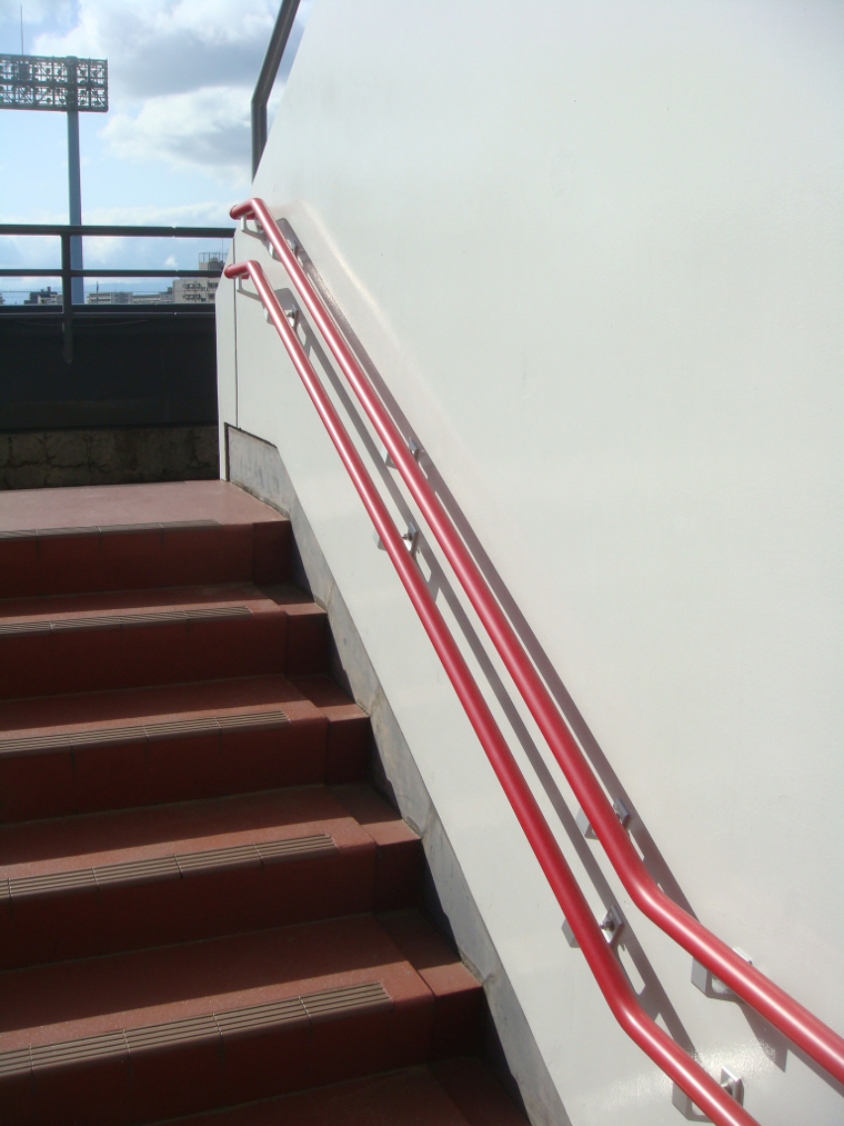 スタンド両端の階段にのみ手摺りが取り付けられた。