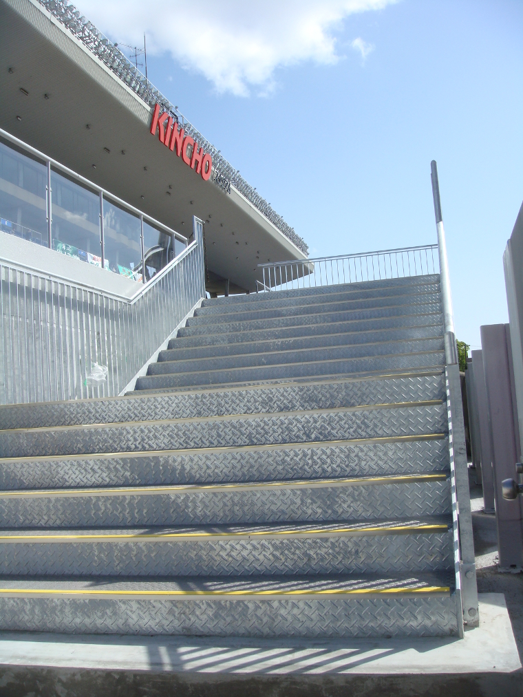 メインスタンドホーム側端に鉄製の階段が新設された。