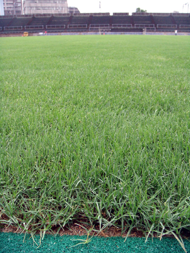 天然芝の成育は順調なように見える。